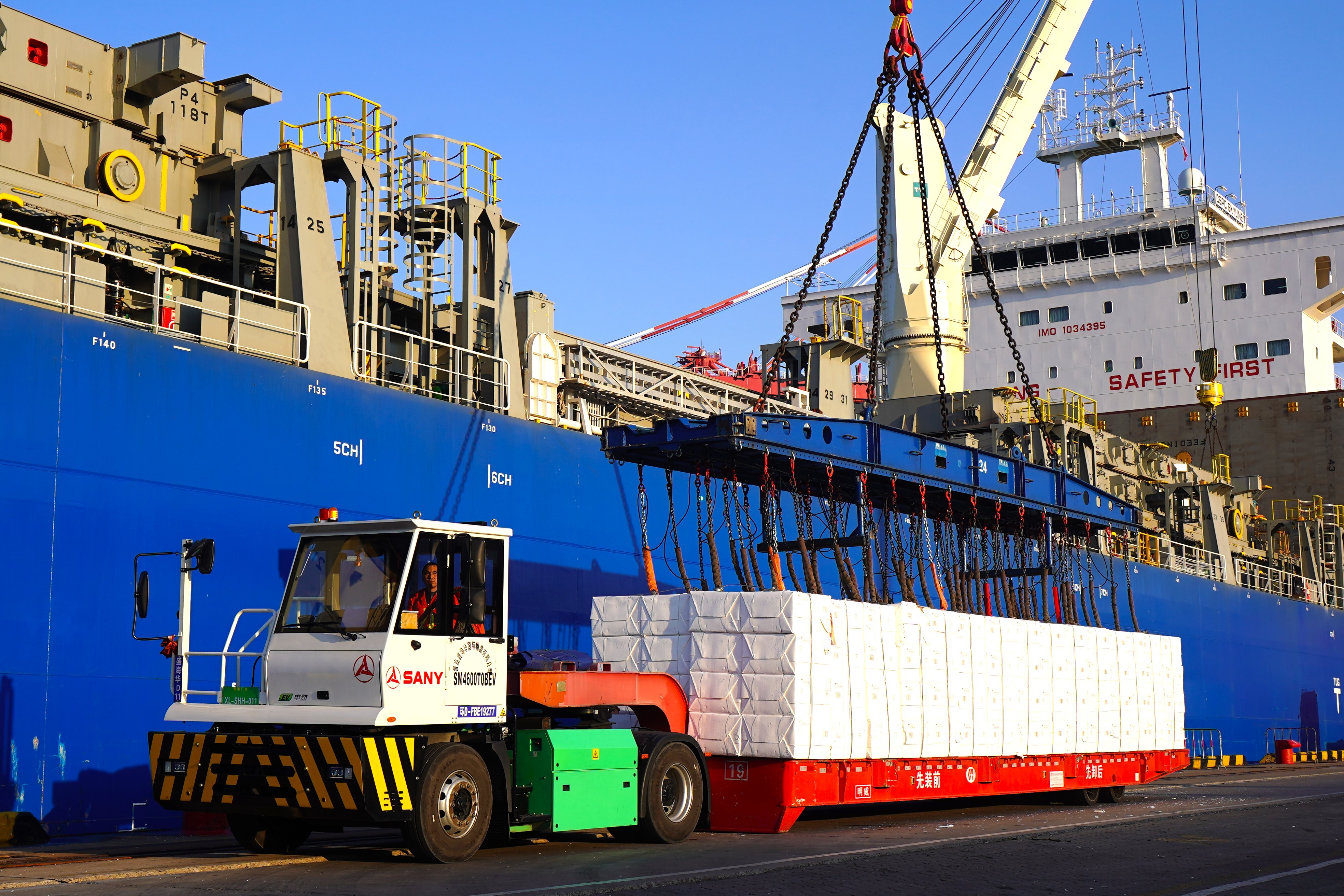 12月24日7!00-12月25日7!00,山东口岸青岛港前湾港区件杂货船埠功课现场船舶丰满、车船如织,跟着“天际线”轮最初一件纯洁的纸浆慢慢吊拆出舱,纸浆船舶成功完成卸船功课使命,青岛港纸浆日夜功课量达到52698吨,第5次刷新日夜接卸世界记载,再度彰显全球最大纸浆进口港的“中国效率”,为保障全球财产链供应链不变通顺注入强劲动能。