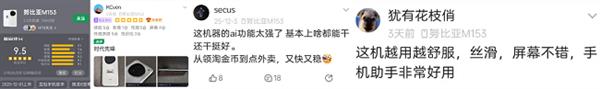 出名科技、财经类博从李楠正在1月的博文中,将豆包手机的横空出生避世,取vibe coding的兴起、claude code确立 computer use 根基模式并列,认为是2025年主要的科技大事。他暗示,豆包手机的呈现,申明手机的 smartphone use 大要率会利用和 pc 雷同的软件手艺方案,但疑惑除将来可能催生完全分歧的硬件形态。从这个角度看,“豆包手机只是起头”。做为已经的魅族科技副总裁,李楠对豆包手机所代表的AI硬件市场前景也十分乐不雅,指出豆包手机“是万亿级市场的升级和再启动”。而对于科技快乐喜爱者和手机发烧友来说,颠末一个月摆布的体验,豆包手机给他们带来的可持续优良体验,更让他们印象深刻。正在出名手机快乐喜爱者社区平台“酷安”上,豆包手机不单获得高达9。5的高评分,良多用户也对其赞扬有加。出格是豆包手机自带的复杂使命从动化,正在会商区带来了最多的反面评价。